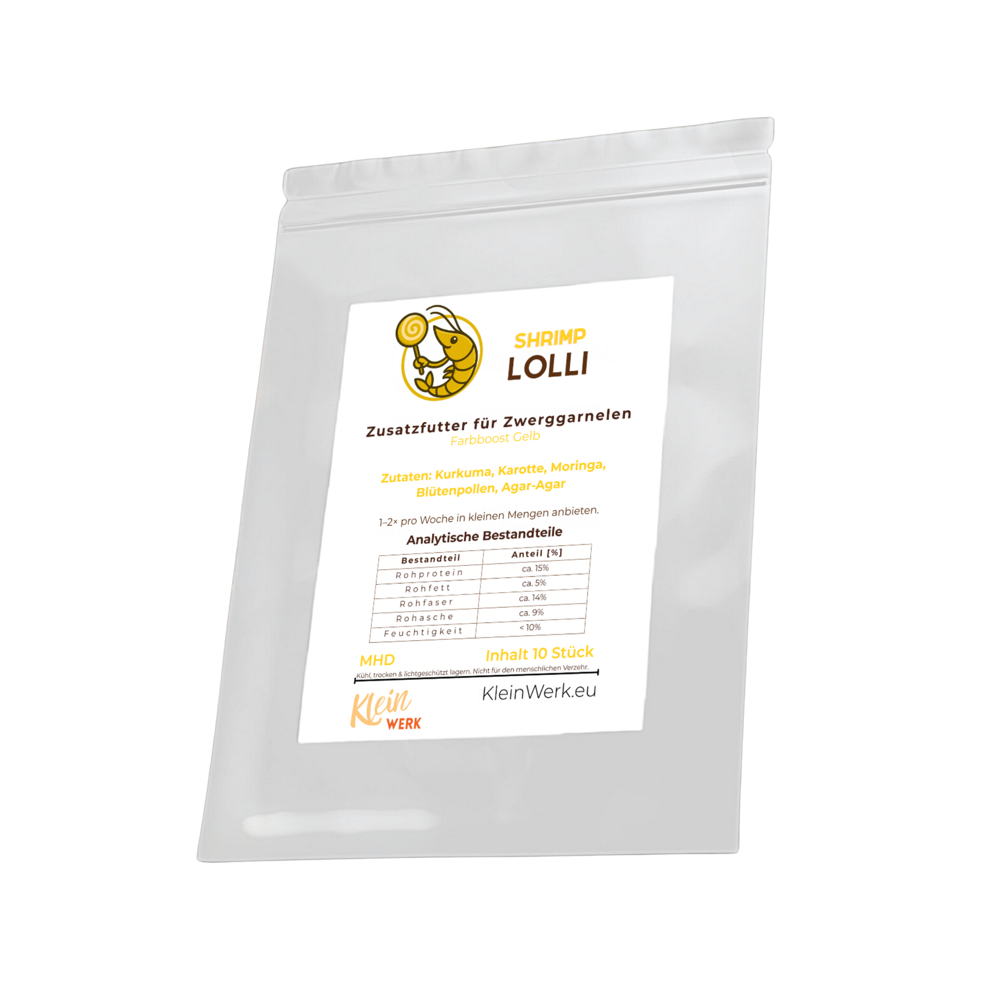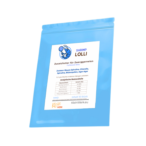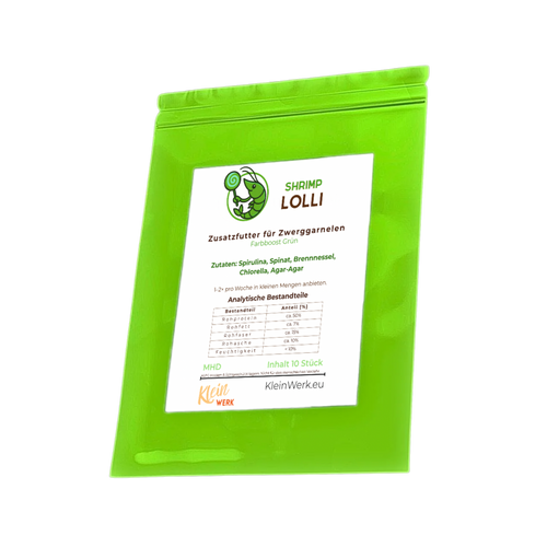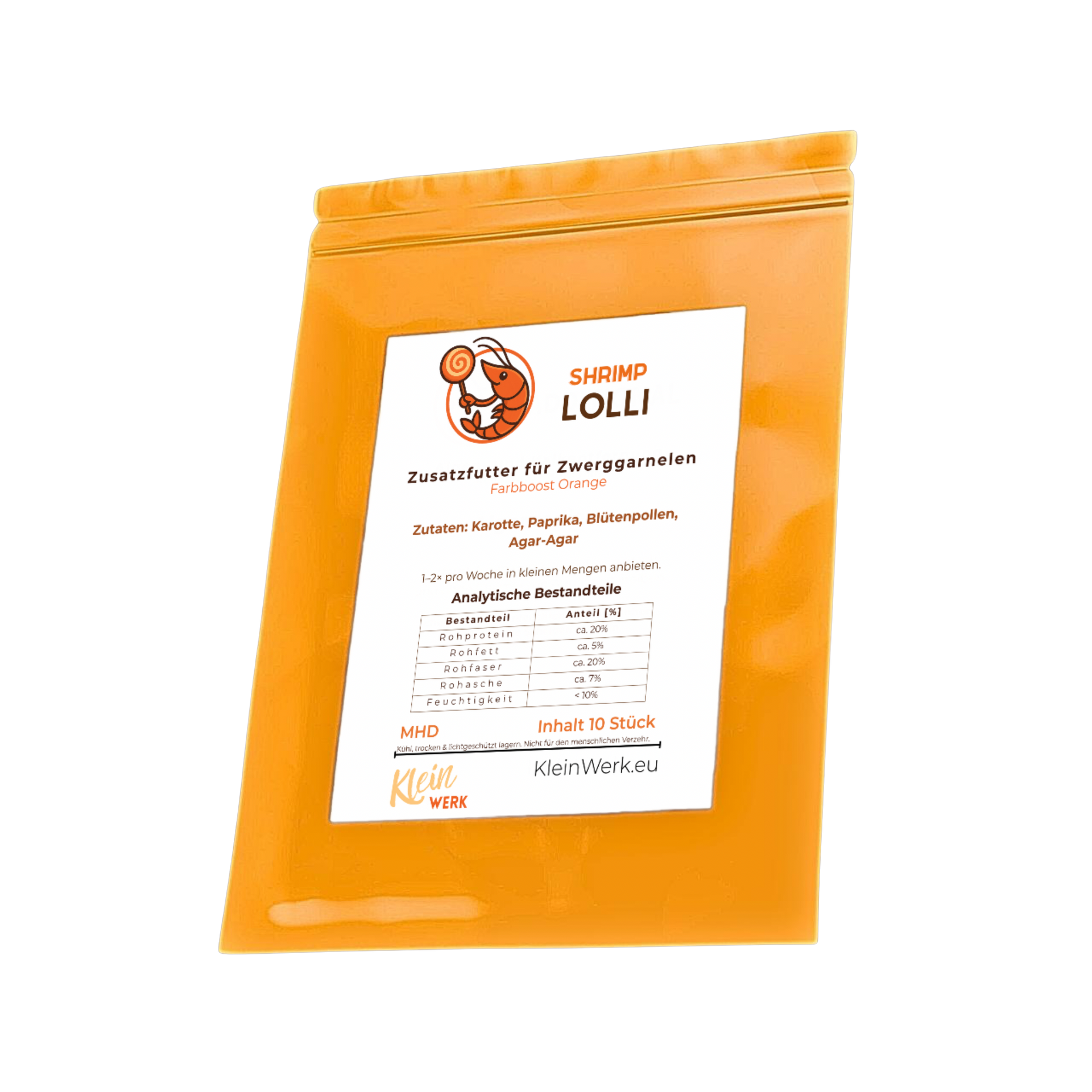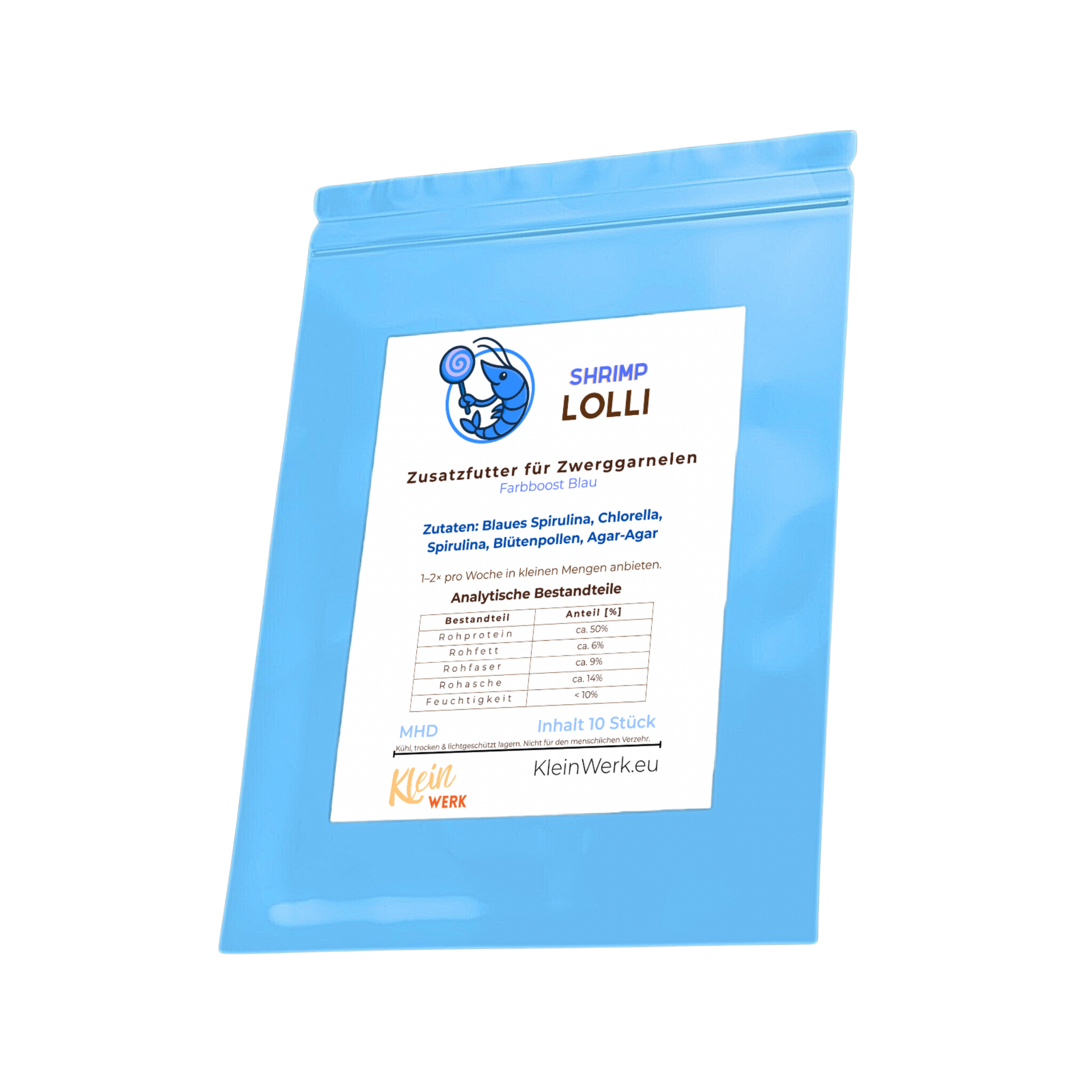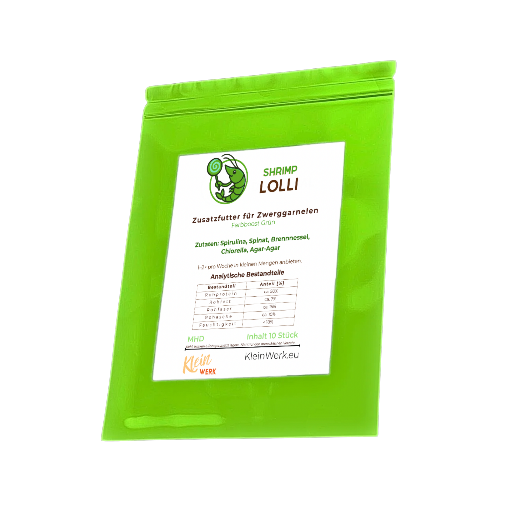 Ergänzungsfuttermittel für Ziergarnelen Wachstum & Häutung – für gesunde Entwicklung und sichere Häutung Unser Shrimp Lolli „Wachstum & Häutung“ ist eine rein pflanzliche Futtermischung, die die natürliche Entwicklung und Häutung deiner Ziergarnelen gezielt unterstützt. Hochwertige...