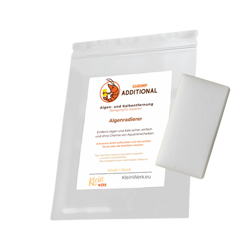 Reinigungsschwamm für Aquarienscheiben Algenradierer Unser Algenradierer entfernt Algen- und Kalkablagerungen sicher, unkompliziert und vollständig ohne Chemie von Glas- und Acrylscheiben. Der Schwamm aus feinem Melamin ist sanft zur Oberfläche und damit kratzfrei, gleichzeitig stark genug,...